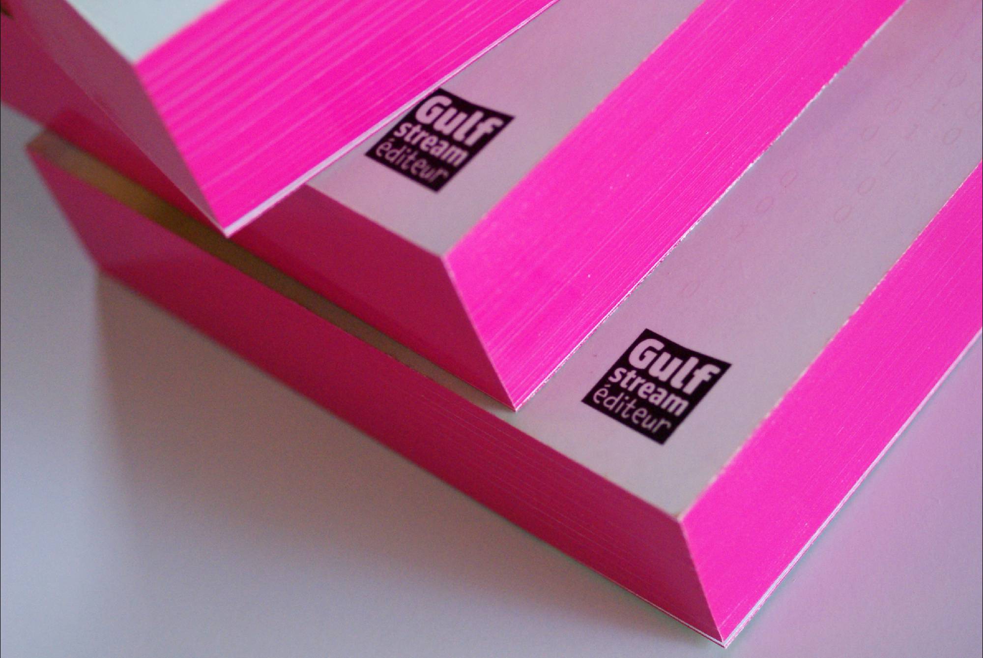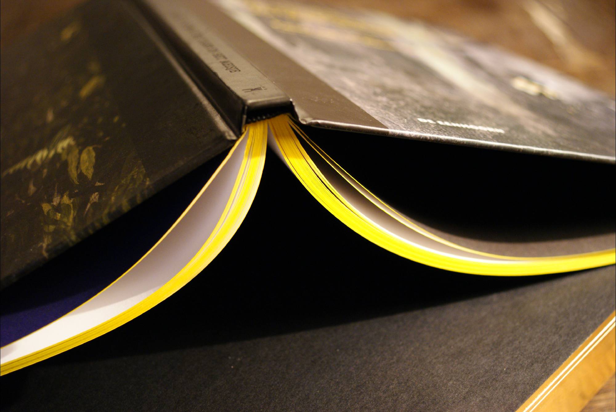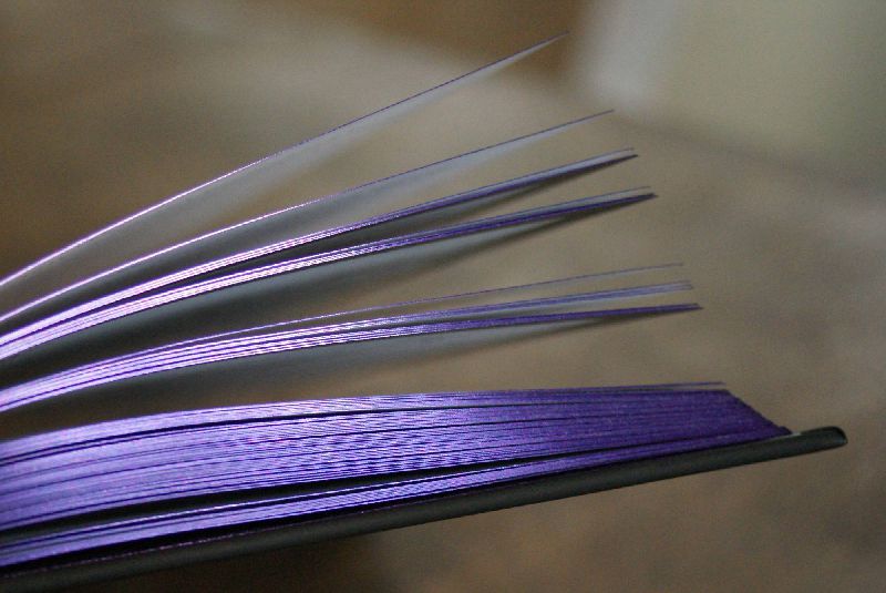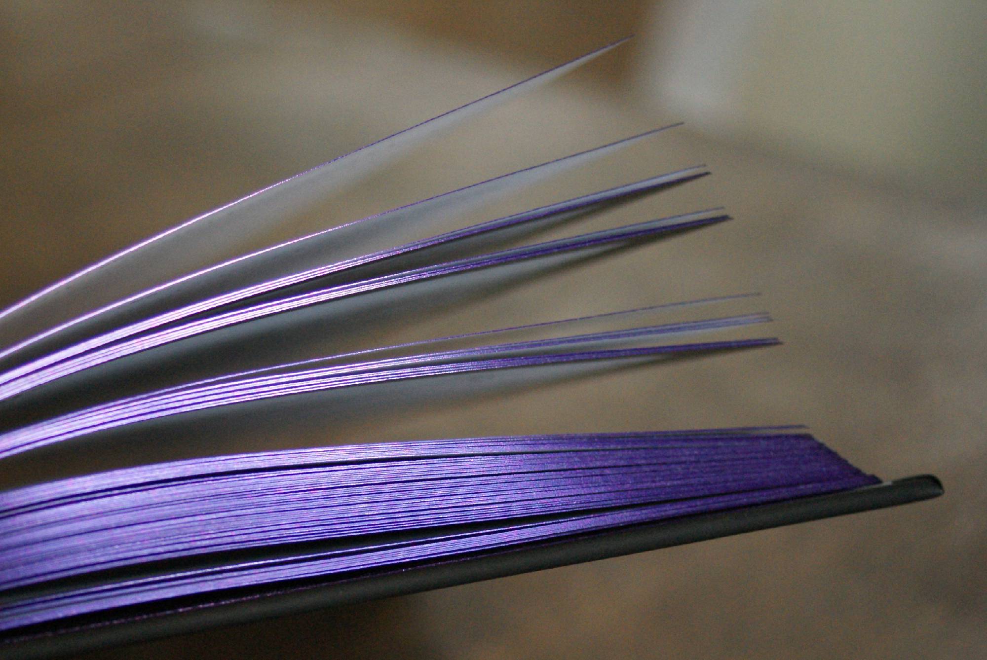 Edge coloring is a delicate process of applying colored foil leaf to the edge of a printed piece. Color choices are avaliable in metallic, standard foil colors and holographic colors. Foil edging gives a wonderfully smooth, radiant, shiny, reflective surface to the edges of your project.